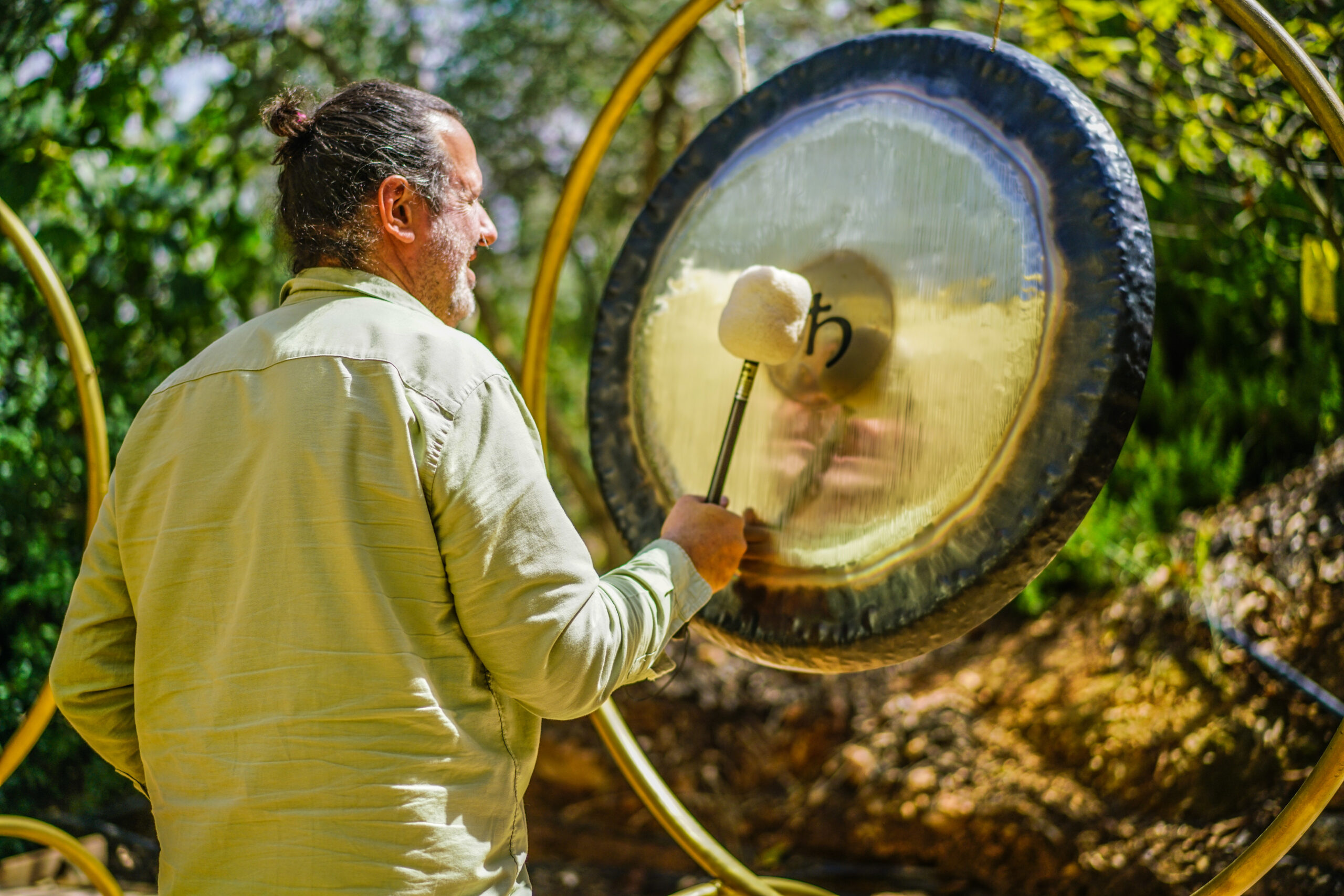 Our cymbals, or gongs, are made of a special alloy of metals, which resonate in the frequencies of the planets of our solar system. In this way, we can experience the Pythagoreian ‘’music of the spheres’’ and through the love and inspiration – as they resonate –